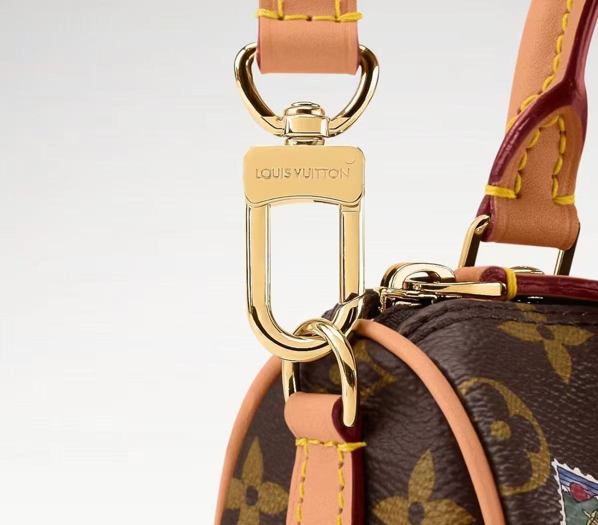 Featuring the brand’s mascot Vivienne in playful illustrations and as a charm, this piece boasts an iconic Monogram canvas body trimmed with leather and finished with metallic hardware, exuding lively elegance.